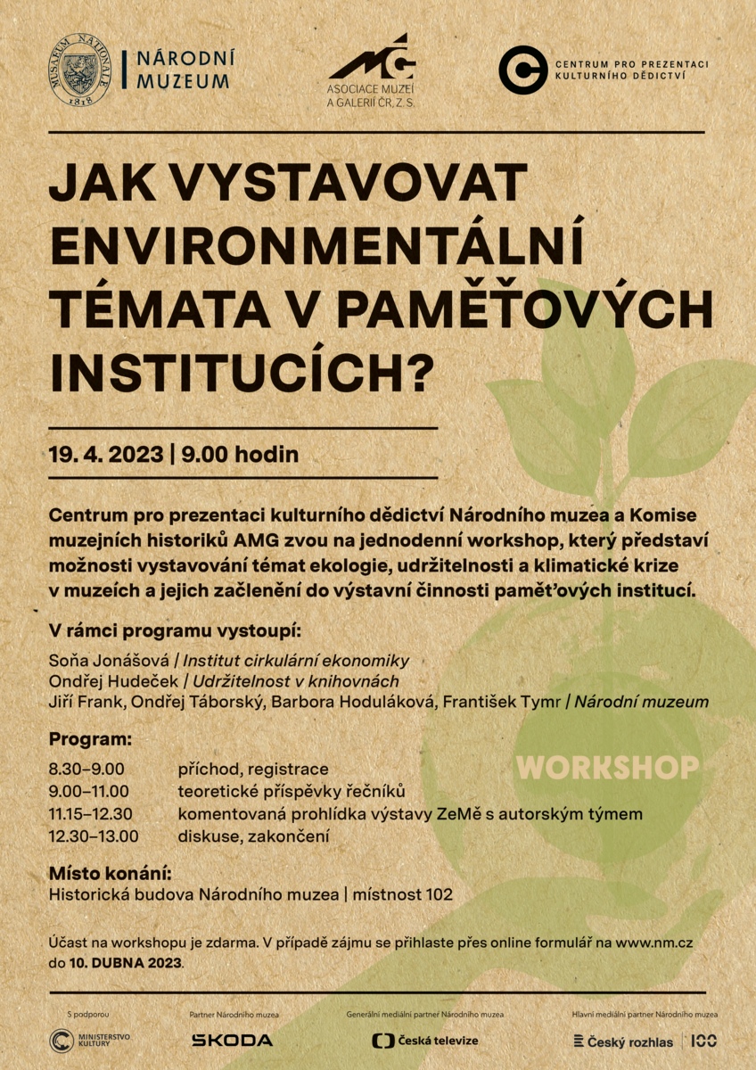 Centrum pro prezentaci kulturního dědictví Národního muzea a Komise muzejních historiků AMG zvou na jednodenní workshop, který představí možnosti vystavování témat ekologie, udržitelnosti a klimatické krize v muzeích a jejich začlenění do výstavní činnosti paměťových institucí.